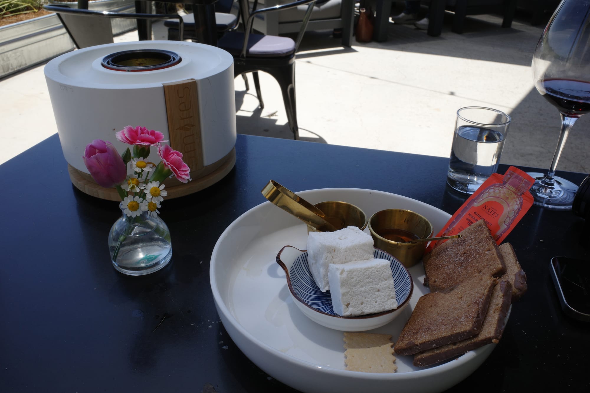 Since we were still hungry after the first charcuterie board, we ordered theSavory + Sweet S’Mores plate. It came with amazing honey (they were pretty sure it was Nate’s). And the s'more experience was pretty fun, and the fire kept us warm from the wind and chilly weather.